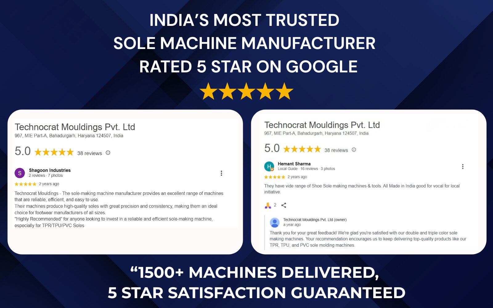 We are India’s leading sole manufacturing machinery supplier.